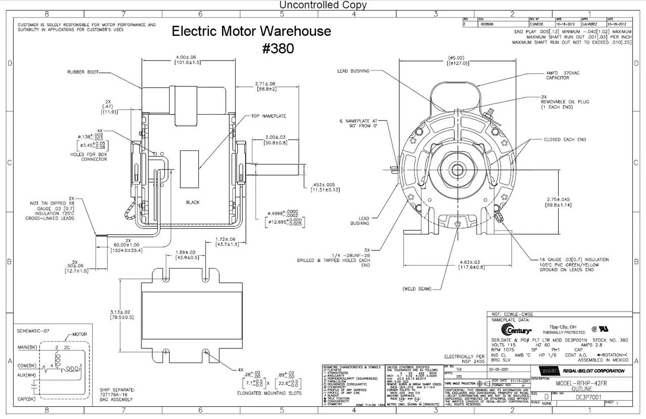 - 1/6 hp 1075 RPM 1-Speed, 2.8 amps, 115V 60hz.