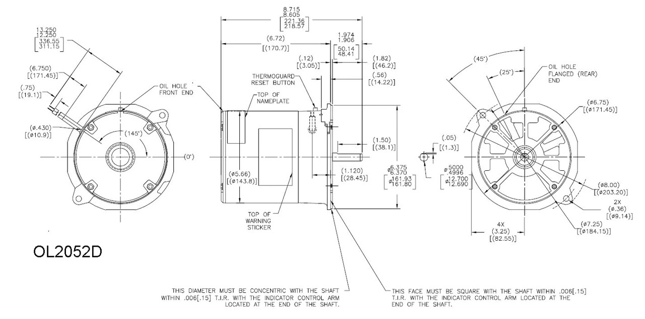 - Shaft = 1/2″ x 1 13/16″; Rotation = Reversible