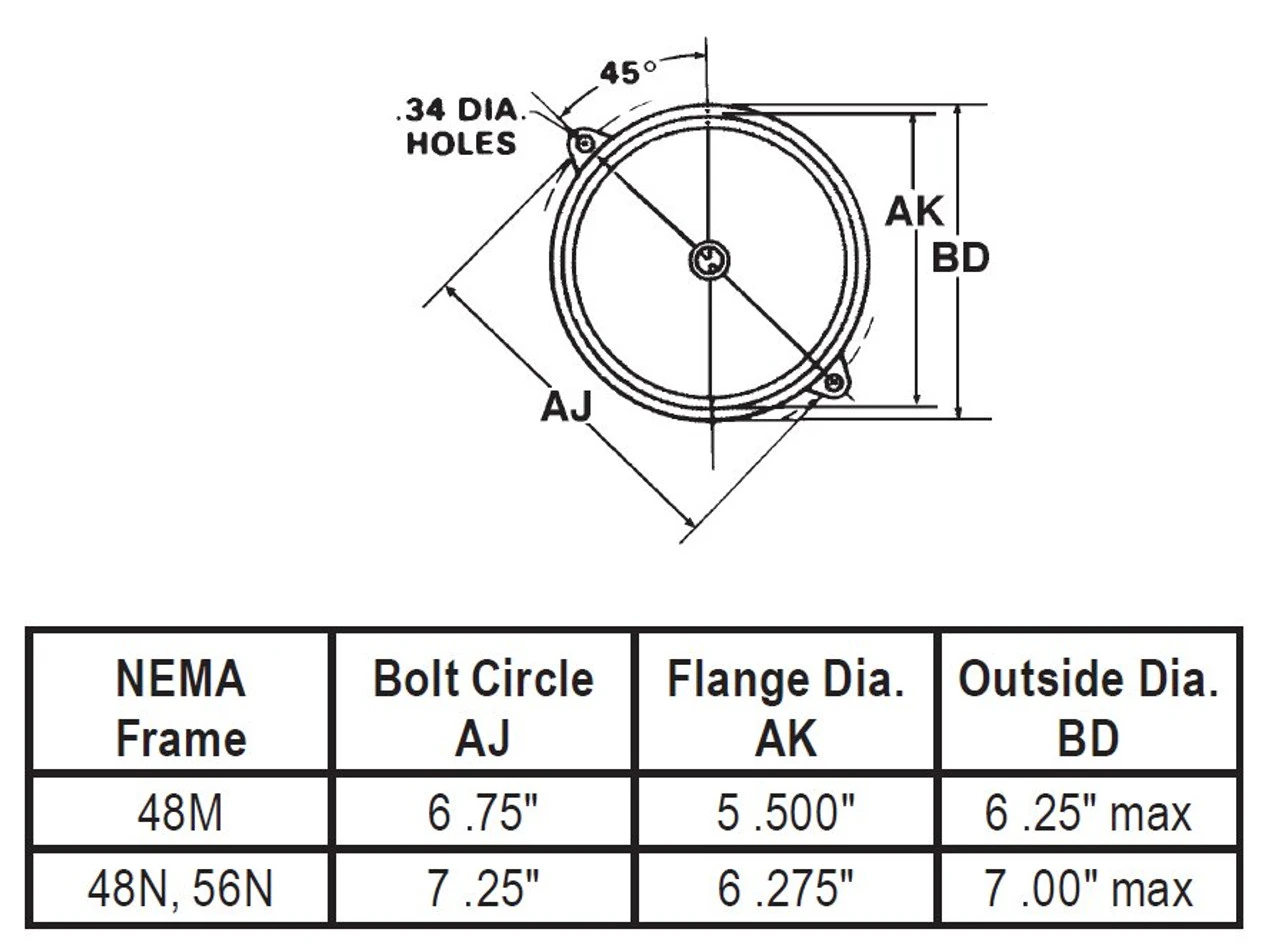 - 1/2 hp 3450 RPM 48N, 8.2/4.1 amps, 115/230 Volts 50/60hz.