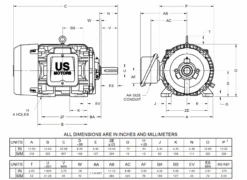 A25P4C Nidec 25 Hp 900 RPM 365 U Frame (Rigid Base) 460V TEFC 3-Phase Automotive Duty Motor