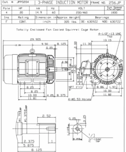 JPP0204 TECO Westinghouse 20 Hp 1800 RPM 256JP Cast Iron 230/460V TEFC Close-Coupled 3-Phase Moto