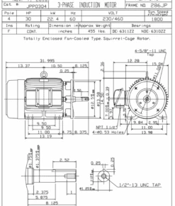 JPP0304 TECO Westinghouse 30 Hp 1800 RPM 286JP Cast Iron 230/460V TEFC Close-Coupled 3-Phase Motor