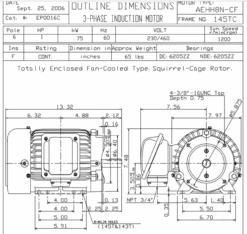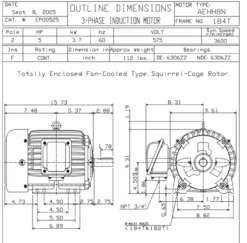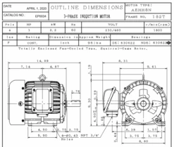 EP0052 TECO Westinghouse 5 Hp 3600 RPM 184T Cast Iron 230/460V TEFC Severe Duty 3-Phase Motor