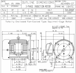 EP0026C TECO Westinghouse 2 Hp 1200 RPM 184TC Cast Iron 230/460V TEFC Severe Duty 3-Phase Motor
