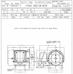 EP0012C TECO Westinghouse 1 Hp 3600 RPM 143TC Cast Iron 230/460V TEFC Severe Duty 3-Phase Motor