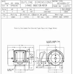 EP0014C TECO Westinghouse 1 Hp 1800 RPM 143TC Cast Iron 230/460V TEFC Severe Duty 3-Phase Motor