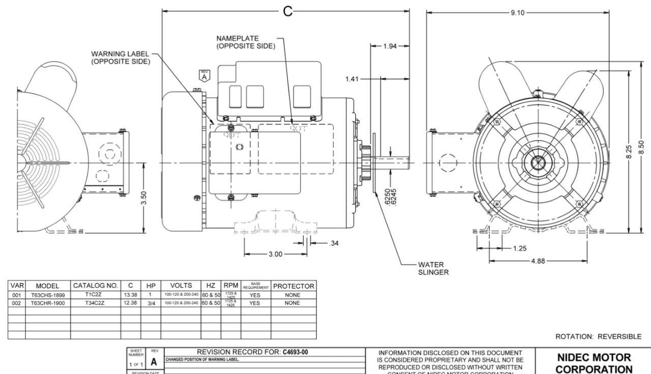 - Rigid Mount, Ball Bearings, Class B Insulation, Reversible