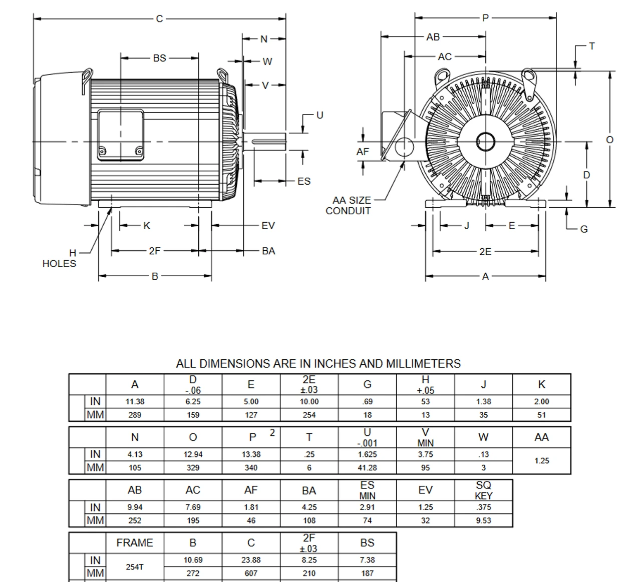 - NEMA 256T frame Keyed Shaft 1 5/8″ Diameter x 4″