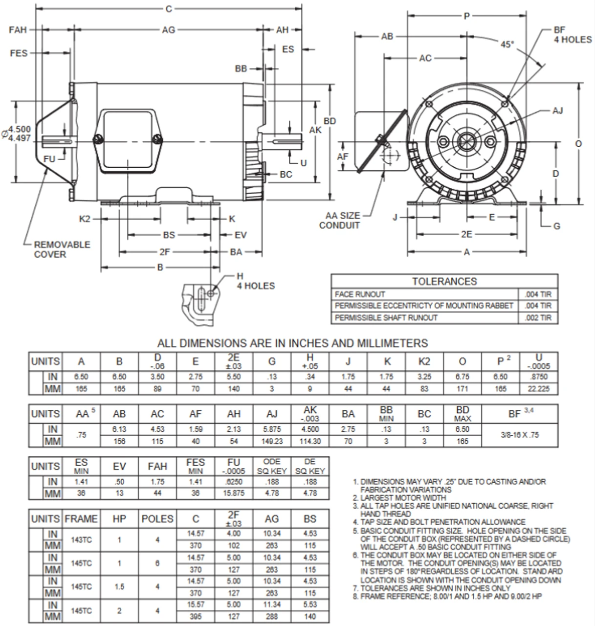 - NEMA 145TC Rolled Steel Frame, Keyed Shaft 5/8″ Diameter x 1 7/8″