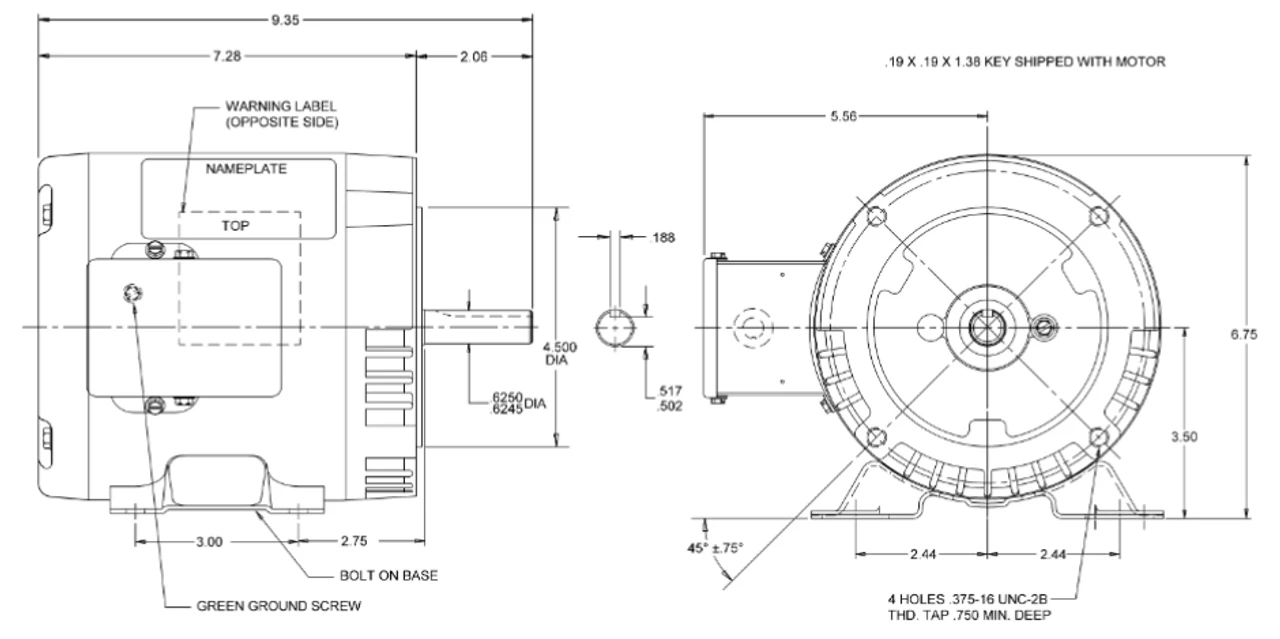 - NEMA 56C Rolled Steel Frame with Cast Aluminum End Bells, Keyed Shaft 5/8″ Diameter x 1 7/8″