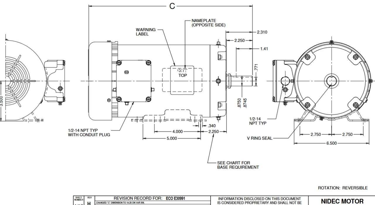 - NEMA 143T Rolled Steel Frame with Cast Aluminum End Bells, Stainless Steel Keyed Shaft 7/8″ Diameter x 2 1/4″