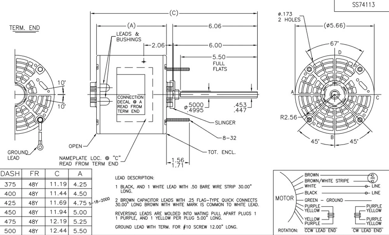 - 1/3 hp 825 RPM, 2.4 amps, 208-230 Volts 60 Hz, Permanent Split Capacitor (PSC)