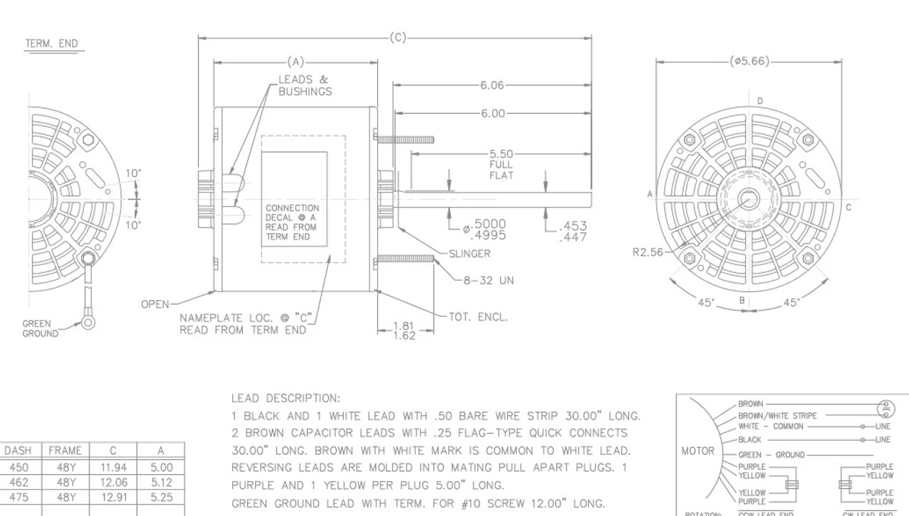 - NEMA 48Y Frame Keyed Shaft 1/2″ Diameter x 6″