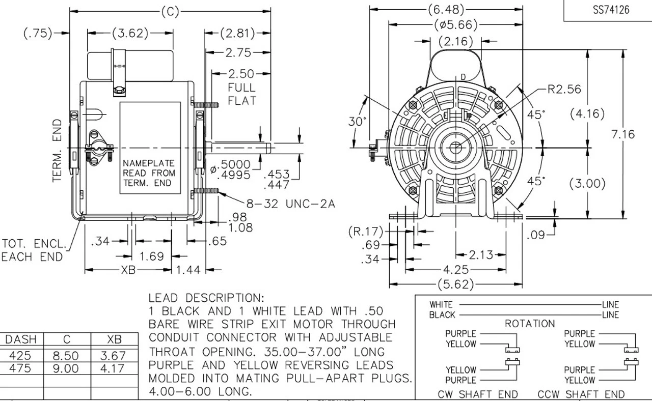 - 1/4 hp 1200 RPM, 4.1 amps, 115 Volts 60 Hz,Split Phase