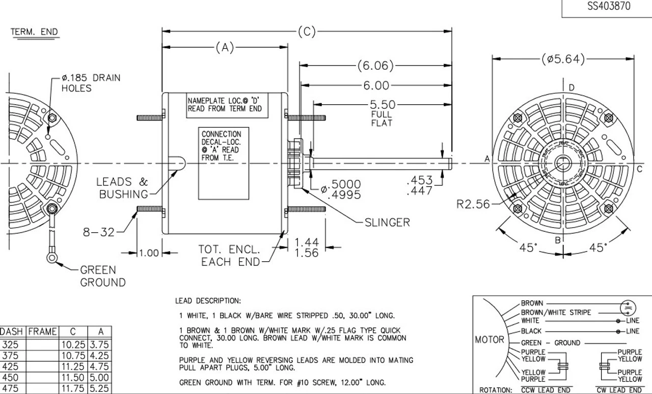 - 1/3 hp 1075 RPM, 1.9 amps, 208-230 Volts 60 Hz, Permanent Split Capacitor (PSC)