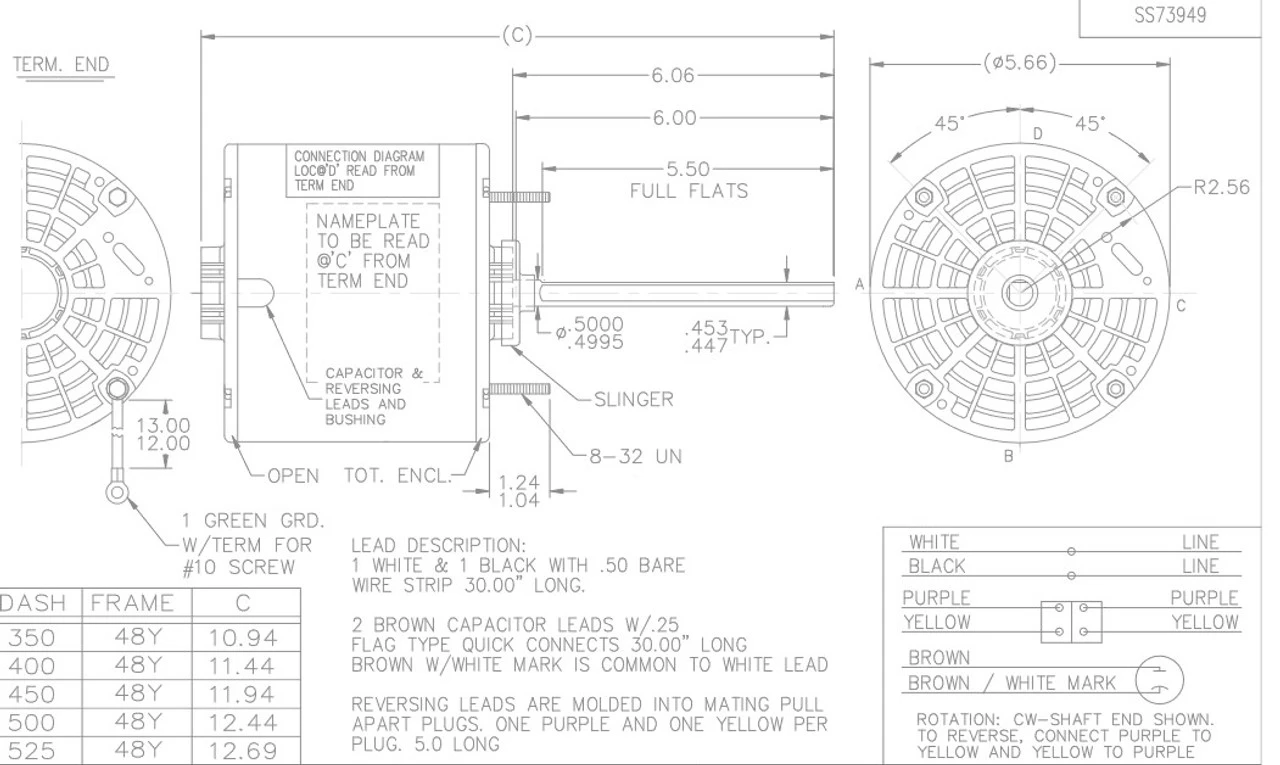 - NEMA 48Y Frame Keyed Shaft 1/2″ Diameter x 6″