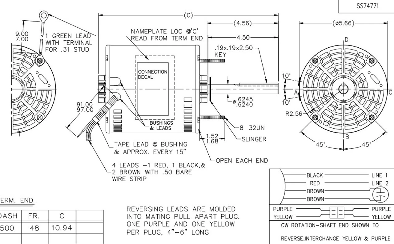 - 3/4 hp 1075 RPM, 2.2 amps, 460 Volts 60 Hz, Permanent Split Capacitor (PSC)