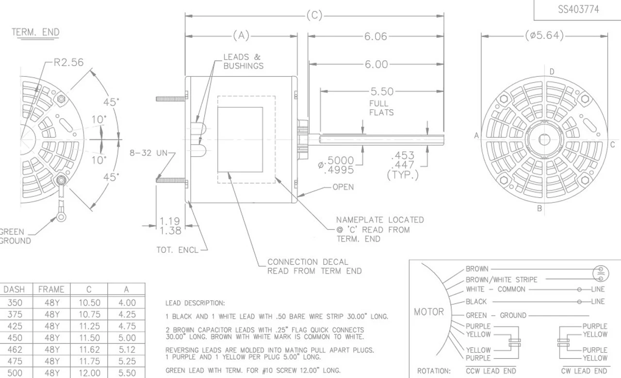 - 1/2 hp 1075 RPM, 4.1-4.0 amps, 208-230 Volts 60 Hz, Permanent Split Capacitor (PSC)