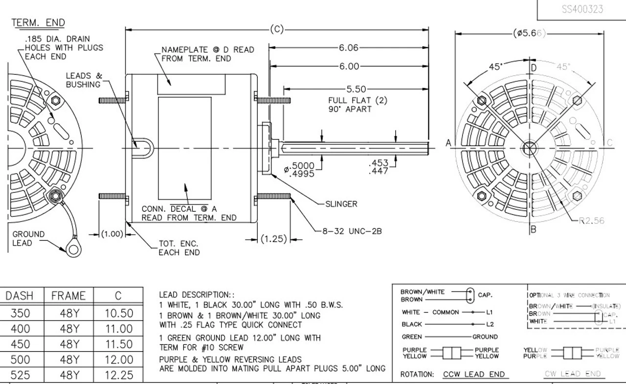 - 1/4 hp 1075 RPM, 0.67 amps, 475 Volts 60 Hz, Permanent Split Capacitor (PSC)