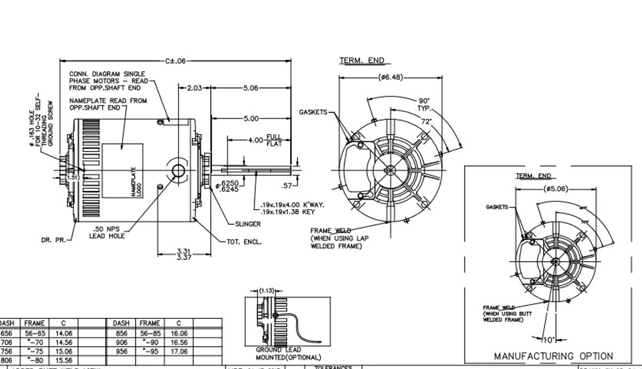- NEMA 56Y Frame Keyed Shaft 5/8″ Diameter x 5″
