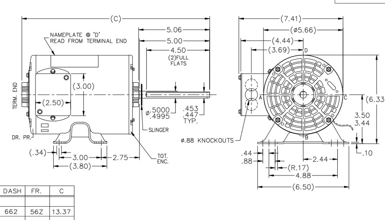 - NEMA 56Z Frame Keyed Shaft 1/2″ Diameter x 5″