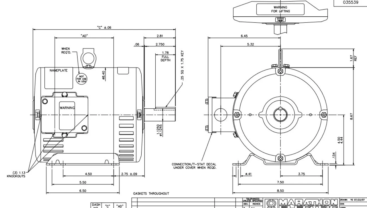 - NEMA 182T Frame, Shaft 2 3/4″ x 1 1/8″ Diameter, 2 speed