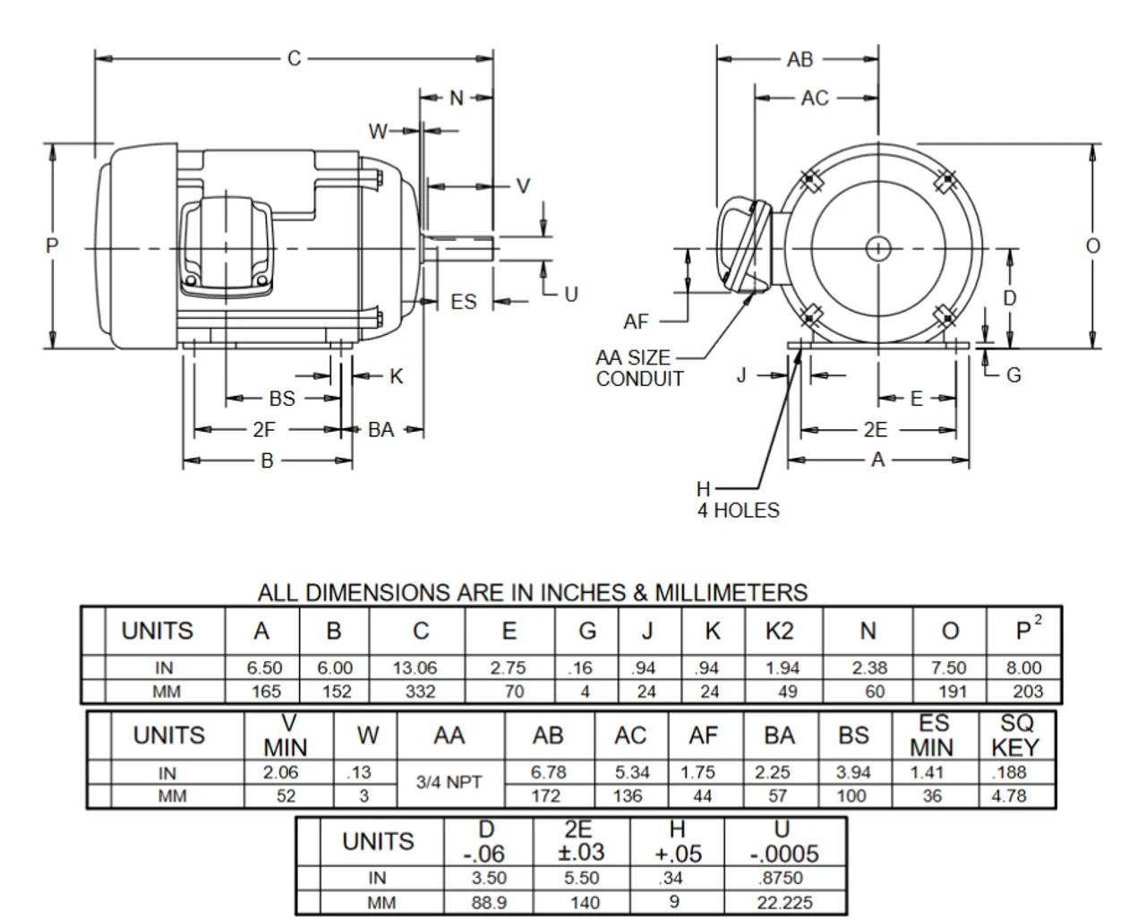 - NEMA 143T Cast Iron frame Keyed Shaft 7/8″ Diameter x 2 1/4″